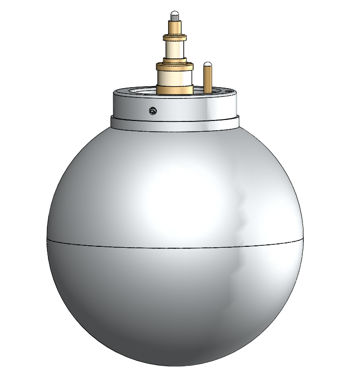 本 0.8L 高气压电离室属于电流型电离室 , 是一种利用核辐射在气体中的电离效应制成的探测器。探测器 受到射线照射时 , 射线与气体中的分子作用产生离子对 , 这些离子在电极电场作用下定向漂移形成输出电流。 其整体呈球形、电极带保护环和内部高气压设计 , 使其具有角响应好、自身本底低、稳定性好和精度高等优点 , 在环境电离辐射监测活动中被广泛应用。