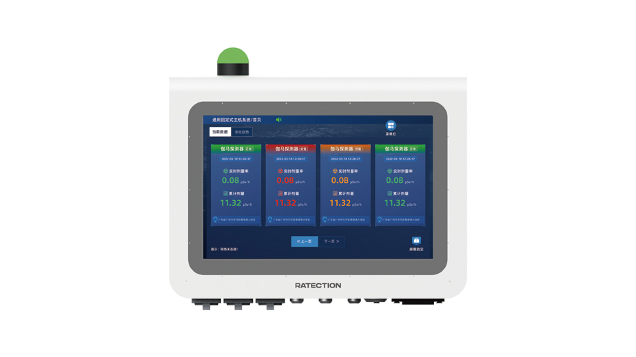 通用固定式主机用于接收探测器的数据,实现人机交互功能,实现数据的实时监测和存储功能,完成辐射监测及系统逻辑单元实现,并将数据传输给中控室管理系统进行进一步处理显示。